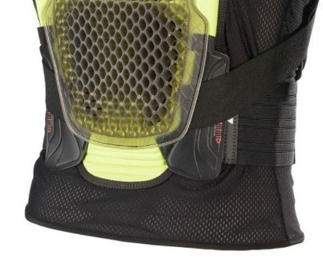 Pružný chránič zad a hrudi s makroventilačními otvory.